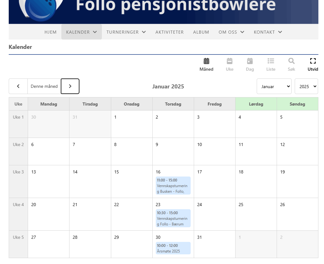 - Kalender med alle kommende turneringer pr. mnd.